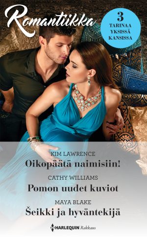 Oikopäätä naimisiin! Lara oli suutuspäissään rynnännyt ääliöpoikaystävänsä luota Rooman kaduille ja oli nyt eksyksissä – ja testosteronihuuruisen teinipoikalauman ympäröimä. Mutta kuin tyhjästä hänen rinnalleen astui komea muukalainen, joka pelasti hänet, suuteli hänet tainnoksiin – ja kosi häntä seuraavana aamuna! Raoul Di Vittorio oli kyllä komea ja luultavasti melko varakaskin, mutta aivan selväsi sekaisin päästään. Pomon uudet kuviot Katsellessaan ympärilleen ylellisessä lontoolaiskartanossa Sunnyn oli vaikea käsittää, kuinka hän oli saattanut suostua tähän – vahtimaan nyreää yhdeksänvuotiasta tyttöä. Tai kyllähän hän sen tiesi: Stefano Gunn oli mies, jolle oli hyvin vaikea sanoa ei. Ja vielä vaikeampaa oli vastustaa Stefanon kuumia suudelmia, vaikka Sunny tiesi, että luvassa olisi vain sydänsurua… eikki ja hyväntekijä Isoisän pyyntö oli täysin mahdoton! Allegra yritti epätoivoisesti keksiä keinon kääntää šeikki Rahim Al-Hadin pään. Mies ylvästeli pröystäilevällä palatsillaan, vaikka hänen kansansa eli kurjuudessa eikä suostunut luopumaan yhdestä vaivaisesta helystä! Allegra ei ollut itsekään aivan varma, mitä aikoi, livahtaessaan keskellä yötä Rahimin makuuhuoneeseen…