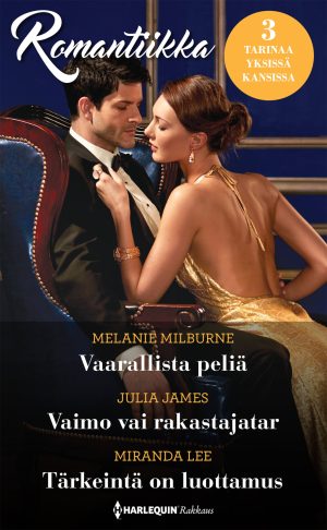Vaarallista peliä Rikas ja komea Luiz Valquez ei ollut tottunut siihen, että naiset nakkelivat hänelle niskojaan ja torjuivat hänen lähentymisyrityksensä. Suorasanaisessa Daisy Wyndhamissa oli jotain suloisen viatonta ja vastustamattoman viettelevää. Kun Daisy katsoi häntä suurilla sinisillä silmillään ja pyysi häntä lomaromanssikseen… Luiz ei olisi pystynyt kieltäytymään, vaikka olisi halunnut! Vaimo vai rakastajatar Kaikki päättyi aikanaan… varsinkin sellainen, jonka oli alusta asti tiennyt olevan ilman tulevaisuutta. Silti Carla oli antanut typerän sydämensä rakastua, ja nyt hän sai kärsiä siitä. Hän ei ollut tarpeeksi jalosukuinen, jotta hänestä voisi koskaan tulla Cesare di Mondaven vaimoa, ylhäistä contessaa… Tärkeintä on luottamus Sen piti olla satumainen ilta - heidän ensimmäinen hääpäivänsä. Mutta seuraavana aamuna Sarah tajusi, että Scottin intohimoiset suudelmat olivatkin olleet täynnä mustasukkaisuutta ja vihaa, eivät rakkautta, ja hän tunsi itsensä petetyksi. Jos Scott ei luottanut häneen, kannattaisiko heidän jatkaa enää avioliittoaan…?